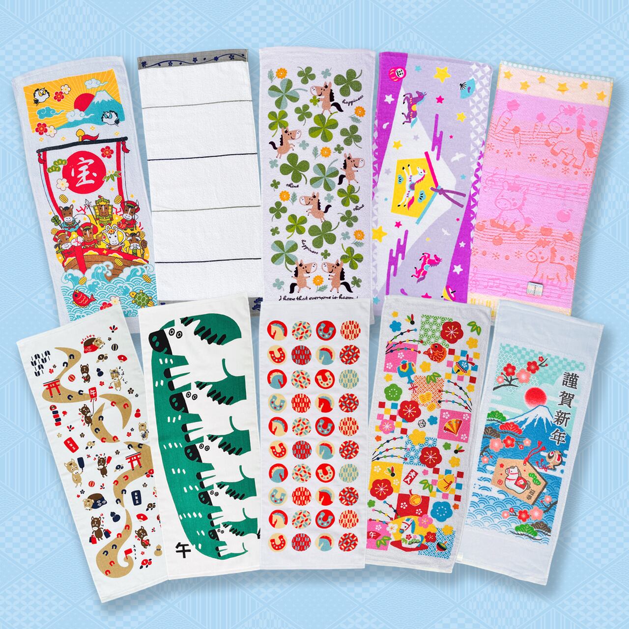 当店で扱う干支フェイスタオルの、絵柄おまかせ10枚セットです