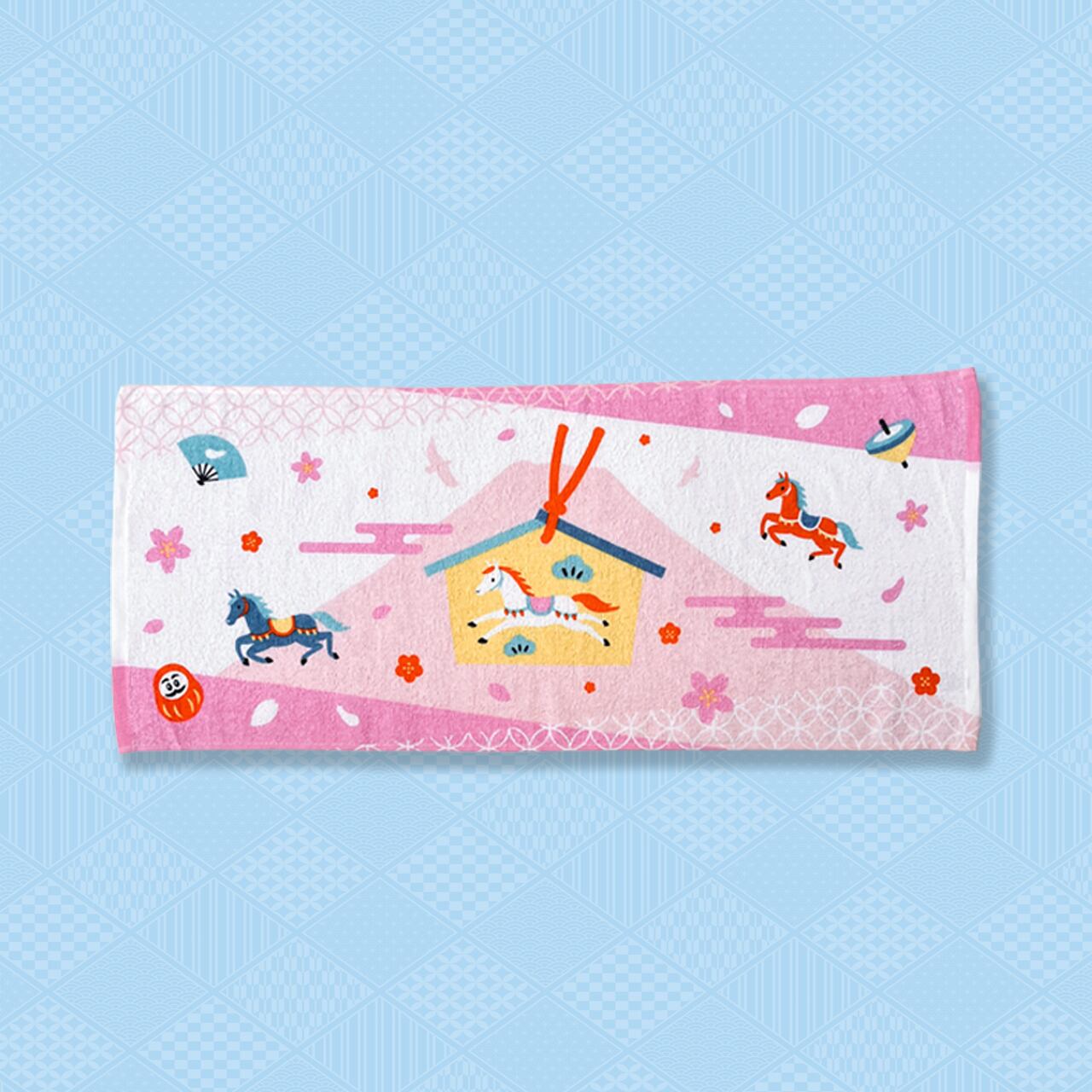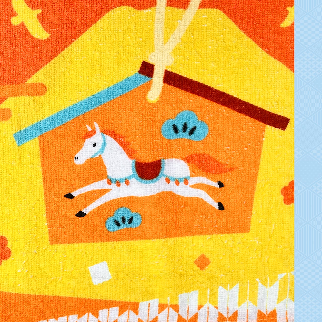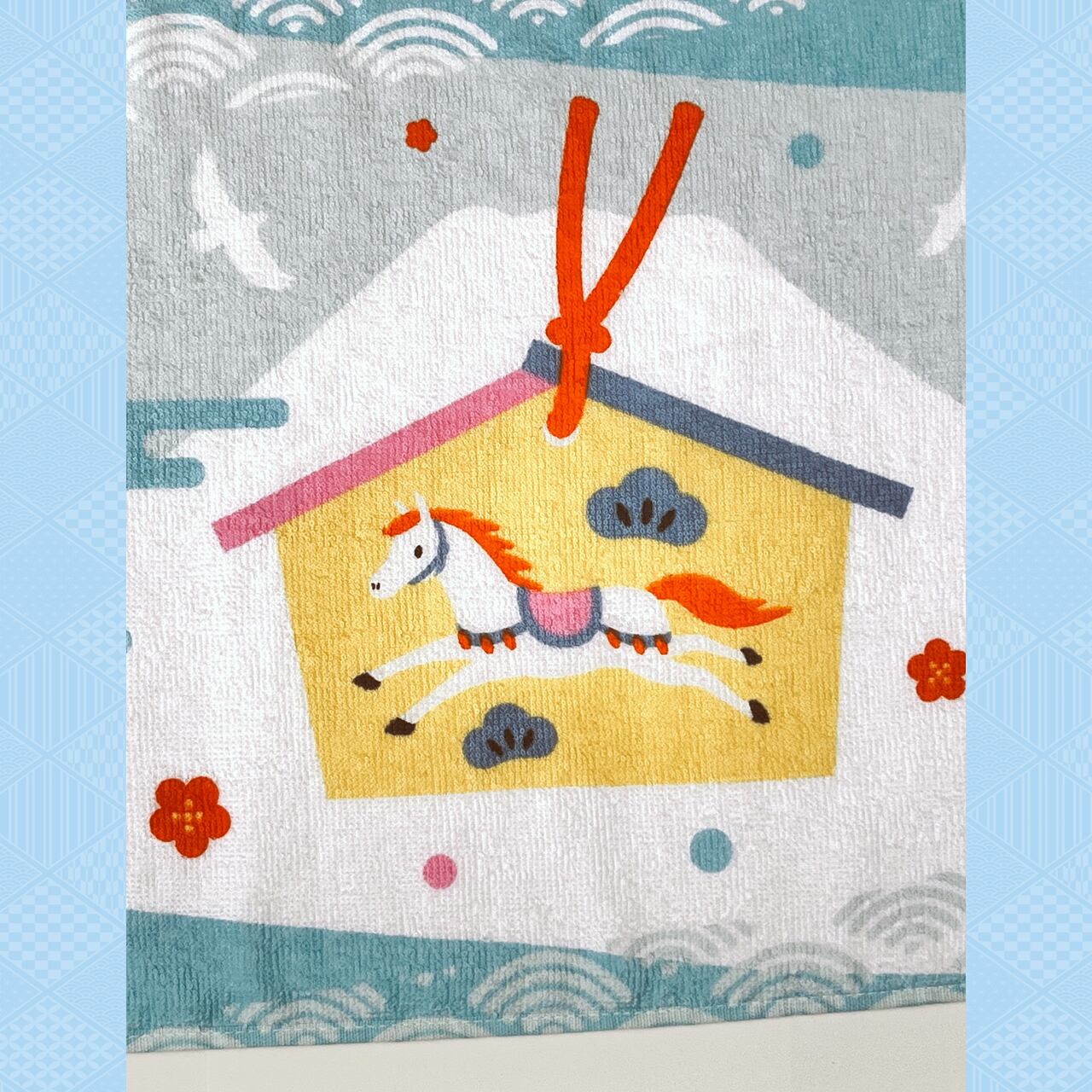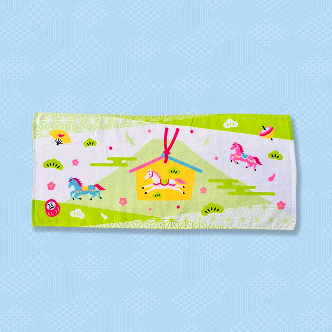 新年の始まりに、見ているだけで福が舞い込んできそうな楽しい馬イラストのプリントフェイスタオル。