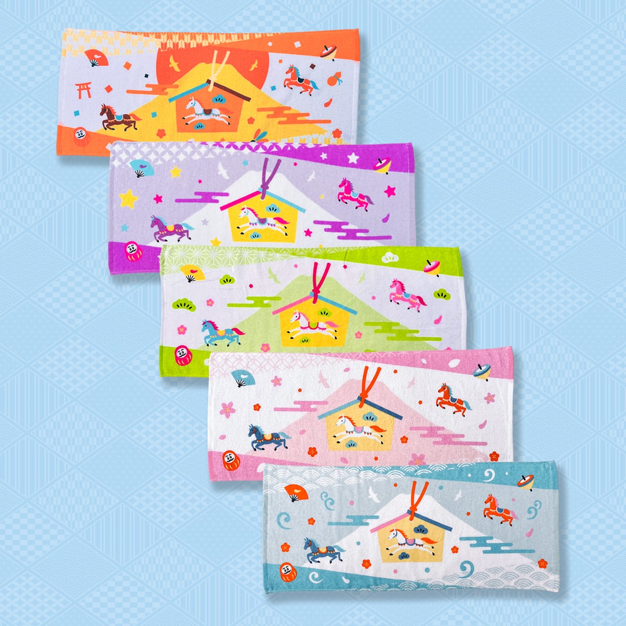 干支タオル 絵柄5柄×各2枚●10枚セット 夢絵馬かざり 午年・馬 干支屋2026
