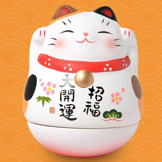 福を呼ぶ招き猫デザインの起き上がりこぼしです
